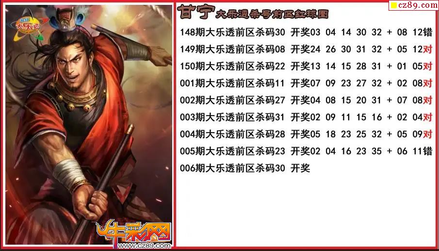 大乐透006期甘宁前区杀号图